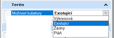 Súčasťou nastavenia Definície prvkov je aj parameter Nastavenie kubatury / Volume Option používaný na identifikáciu typu kubatúry daného prvku (existujúci stav, nový stav , nevhodný a pod.):