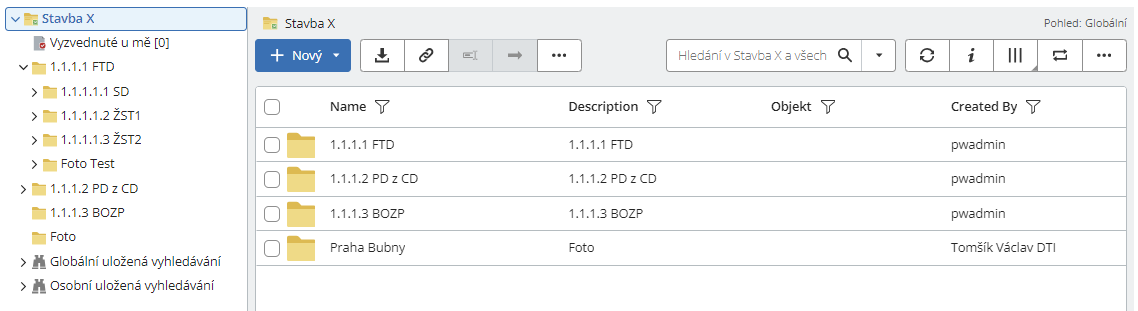 Po zadání přihlašovacích údajů se v hlavním okně zobrazí struktura adresářů a souborů. Ovládání stránky je nastaveno dle standardu Office365 (OneDrive) a je zcela intuitivní. Přístup k souborům je řízen nastavením datového zdroje projektu pro konkrétního uživatele. Je proto možné, že některé soubory budou pro uživatele k dispozici pouze pro čtení.