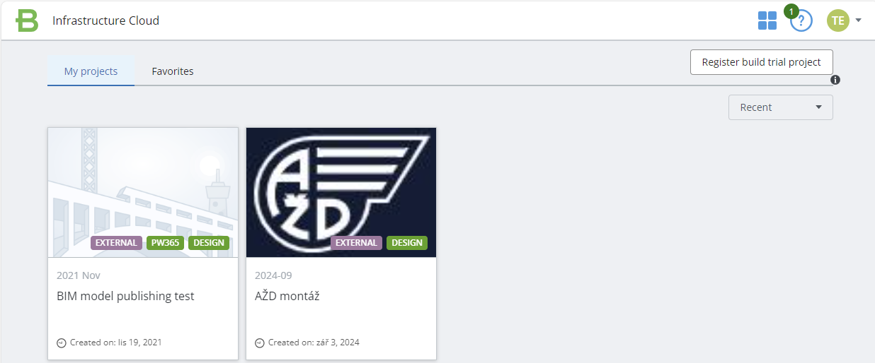 Do projektu se dá přihlásit zadáním obecné adresy portálu PW … https://infrastructurecloud.bentley.com/.