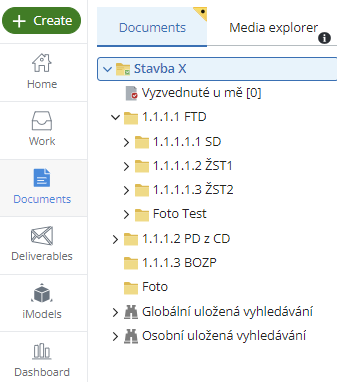 Kliknutím na ikonu budete přepojeni na stránku s daty CDE a adresářovou strukturou projektu.
