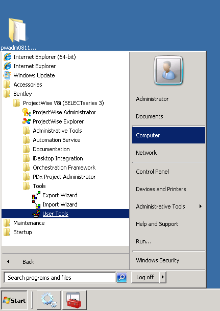 Windows 7 Zvoľte Start > Bentley > ProjectWise > Tools > UserTools ...