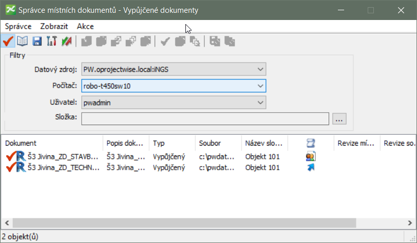 – zoznam dokumentov, ktoré boli vyexportované z ProjectWise. - Kópie prostredí (Workspace) –