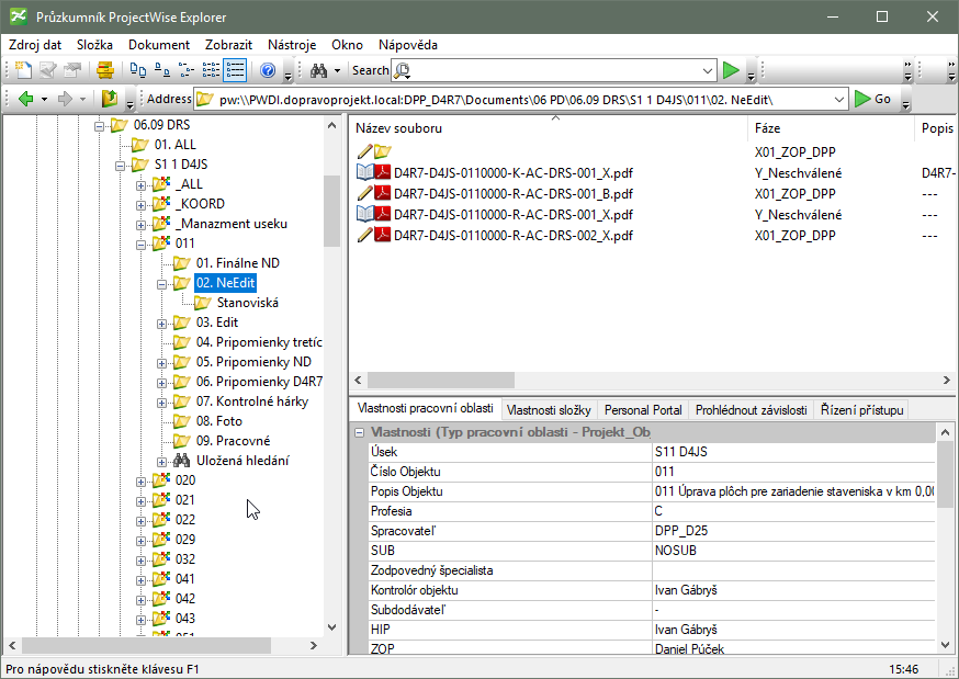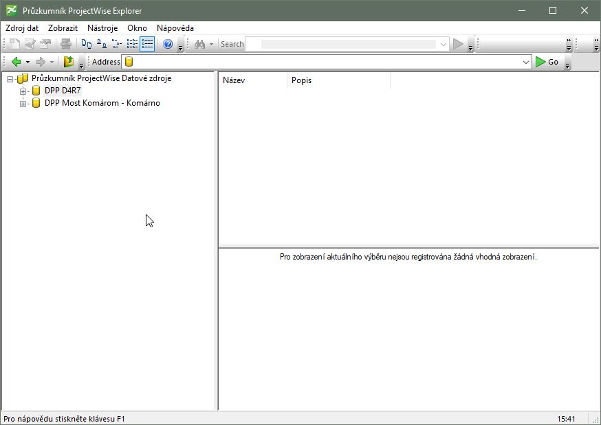 ProjectWise Explorer – používanie Symboly/Ikony zobrazované v rozhraní Príklad rozhrania ProjectWise Explorer po naštartovaní PW Explorer-a: Príklad rozhrania ProjectWise Explorer-a po prihlásení sa do dátového zdroja ProjectWise: