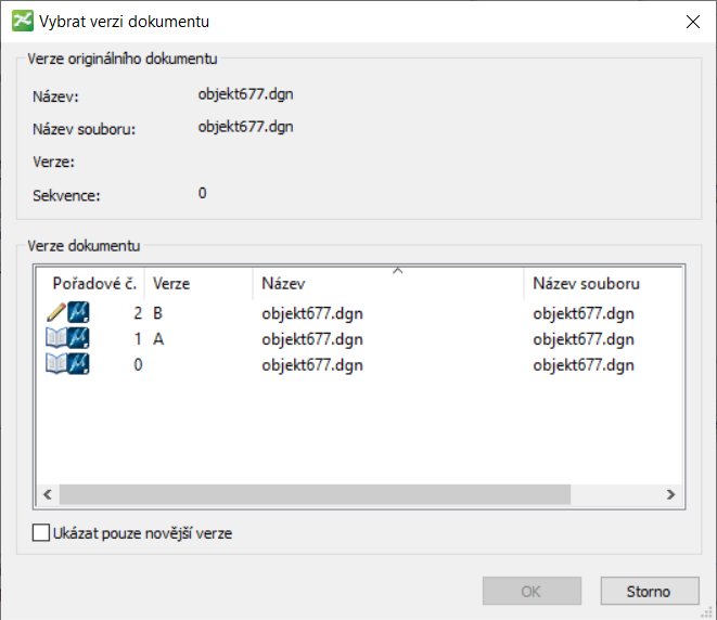 - V zozname verzií vyberte požadovanú verziu dokumentu a potvrďte <OK>