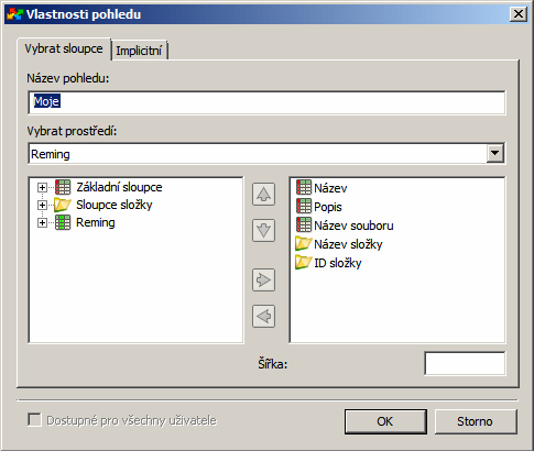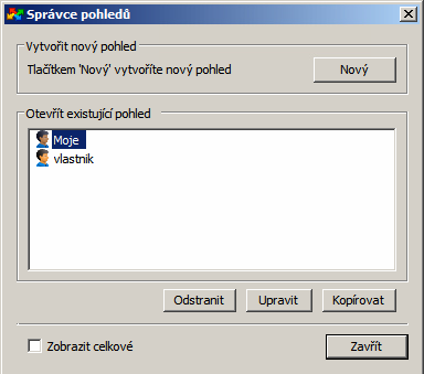 - tlačítkom New / Nový vytvoríte vlastnú definíciu zobrazenia