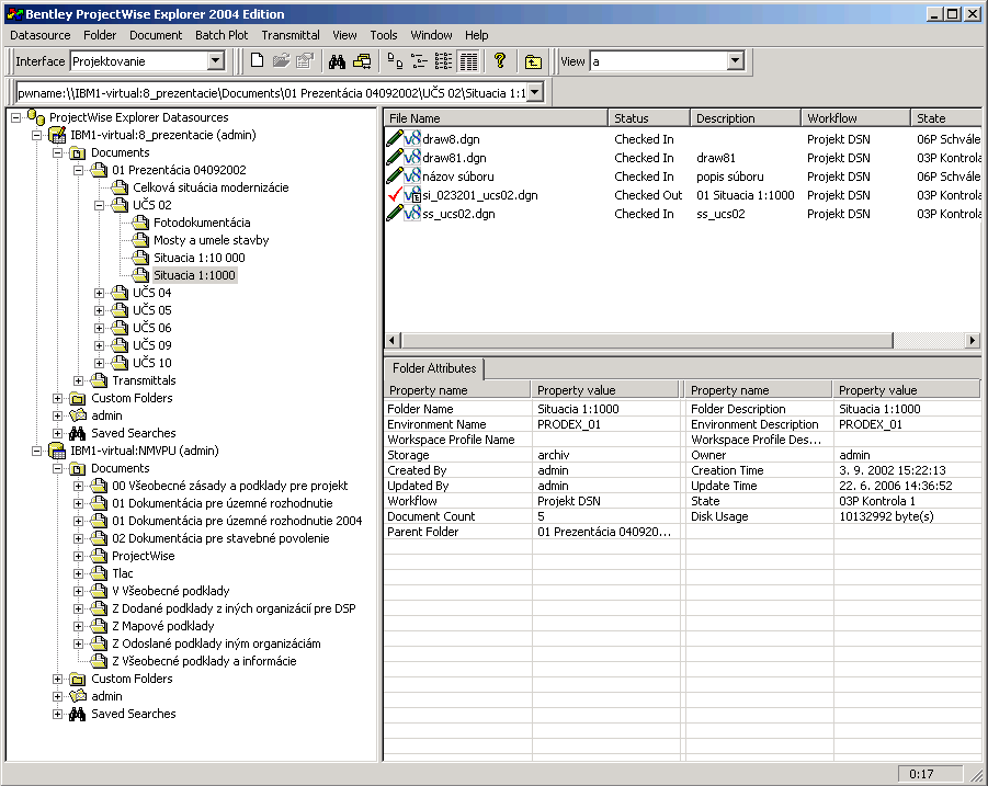 Po naštartovaní ProjectWise Explorer-a a prihlásení sa dokumenty zobrazia podľa vybraného nastavenia