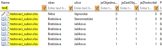 Vyhľadávať, resp. filtrovať súbory podľa daného kritéria je možné aj priamo v okne so zobrazeným obsahom zložky kliknutím do priestoru vedľa ikonky „lievika“ (filtra) pri názve konkrétneho stĺpca pohľadu a zadaním konkrétneho textu / časti textu, podľa ktorého chceme dokumenty vyhľadávať / filtrovať.