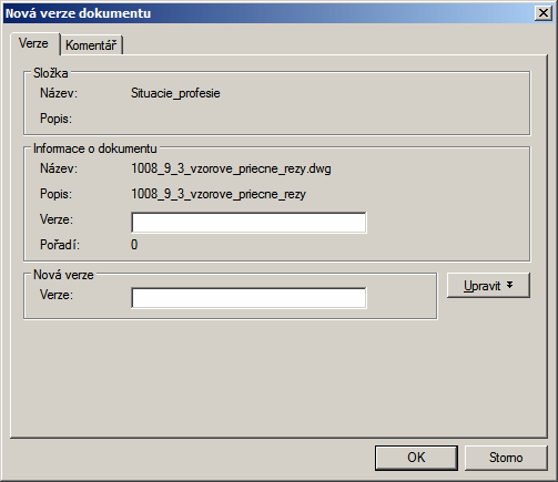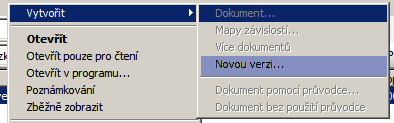 Verzie zachycujú rôzne stavy dokumentu v čase. Rozhodnutie o vytvorení verzie dokumentu je na používateľovi. Novú verziu dokumentu vytvoríme nasledovne: