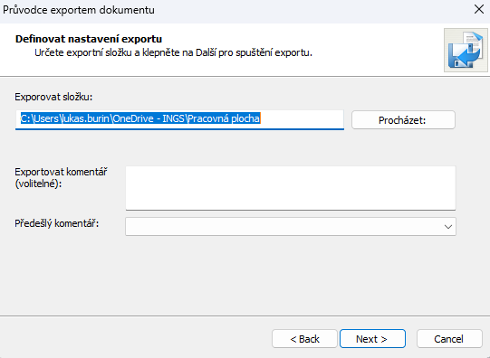 - V poli Složka pro export zadejte, kam chcete dokumenty exportovat.