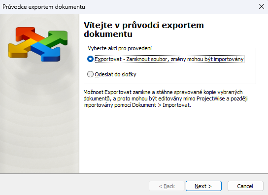 - Vyberte možnost Exportovat a klikněte na tlačítko Další.