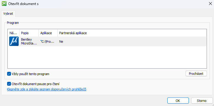 Kontrola a otevření dokumentu k úpravám v aplikaci, která není výchozí aplikací.