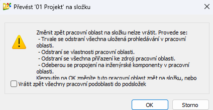 Otevře se dialogové okno Převést <pracovní oblast> na složku, které budou při převodu pracovní oblasti do běžné složky vyřazeny.