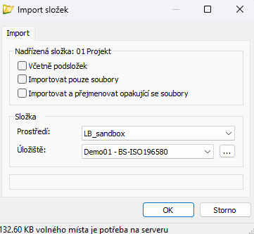 - Nastavte možnosti importu podle potřeby (viz Dialogové okno Import složek).