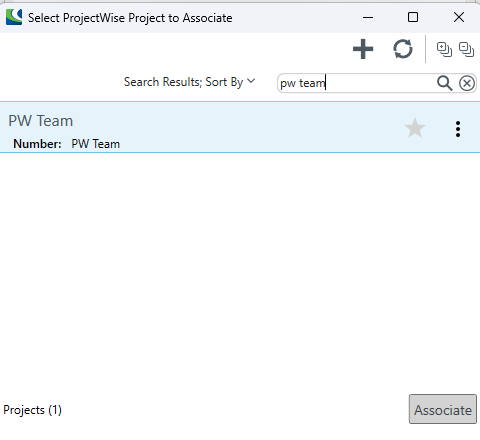 - V dialogovém okně Vybrat projekt ProjectWise k přidružení klikněte na tlačítko Obnovit, aby se nový projekt objevil v seznamu.