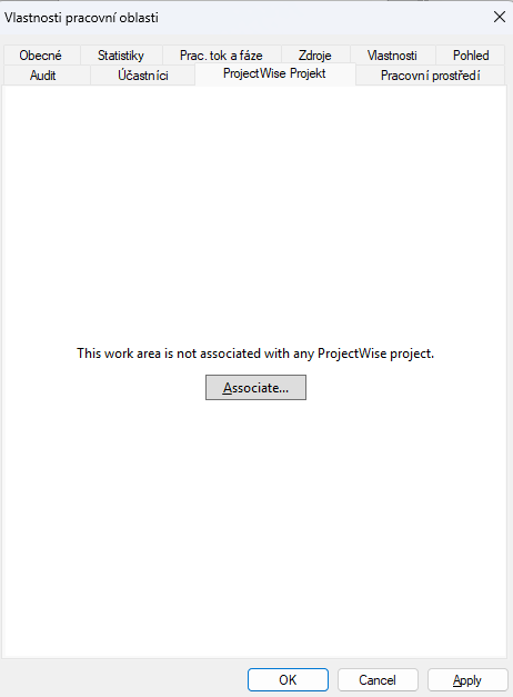 Přiřazení pracovní oblasti k projektu ProjectWise Přiřazení pracovní oblasti k ProjectWise