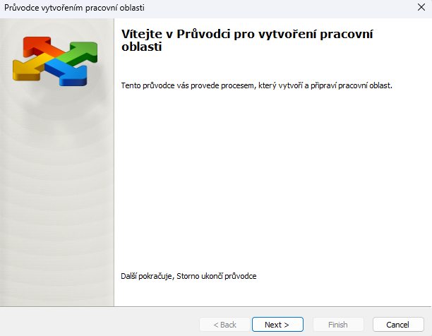 - Po otevření Průvodce vytvořením pracovní oblasti klikněte na tlačítko Další.