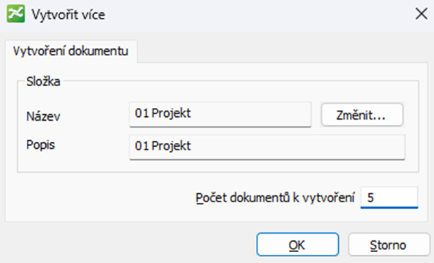 - Zadejte počet dokumentů, které chcete vytvořit, a klikněte na tlačítko OK.