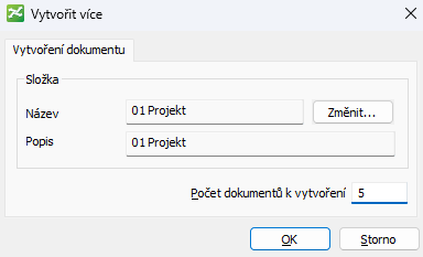 - Zadejte počet dokumentů, které chcete vytvořit, a klikněte na tlačítko OK.