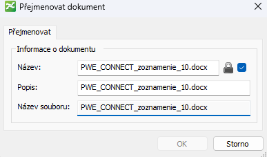 Změna názvu dokumentu pomocí dialogového okna Přejmenovat dokument