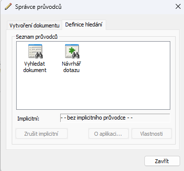 - Chcete-li dialogové okno Hledat podle formuláře nastavit jako výchozí dialogové okno pro vytváření vyhledávání, vyberte ikonu Vyhledat dokument a klikněte na tlačítko Nastavit jako výchozí.
