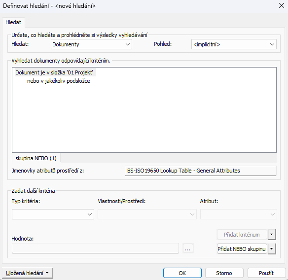 - Kliknutím na tlačítko OK spustíte vyhledávání a zavřete dialogové okno, nebo kliknutím na tlačítko Použít spustíte vyhledávání, ale dialogové okno necháte otevřené.