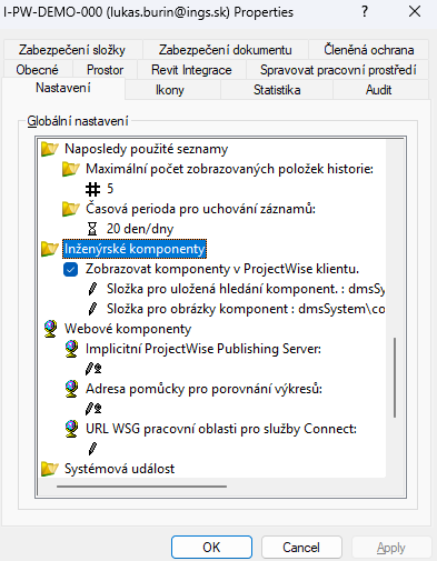 - V kategorii Engineering Components (Technické součásti) a podle potřeby zapněte nebo vypněte Display Components (Zobrazit součásti) v aplikaci ProjectWise Explorer.
