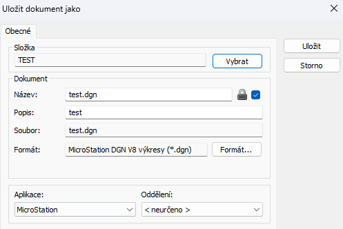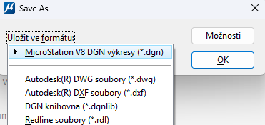 Vytvoření kopie otevřeného DGN pomocí integrovaného dialogového okna Uložit dokument jako