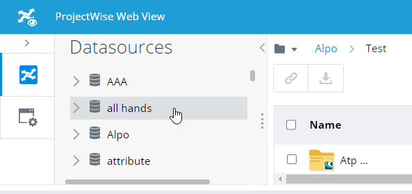 Ak otvoríte ProjectWise Web View a nepokúsi sa vás prihlásiť do žiadneho z pripojených dátových zdrojov v zozname, alebo ak ste už prihlásený v jednom dátovom zdroji a chceli by ste sa prihlásiť do druhého, vyberte iný dátový zdroj v paneli Datasources (dátové zdroje).