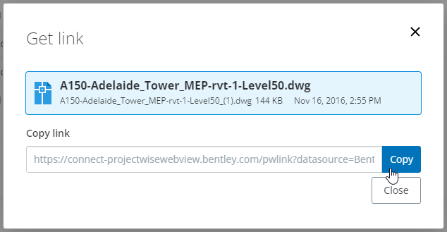 - V dialógovom okne Get Link kliknite na tlačítko Copy napravo od poľa Copy link.