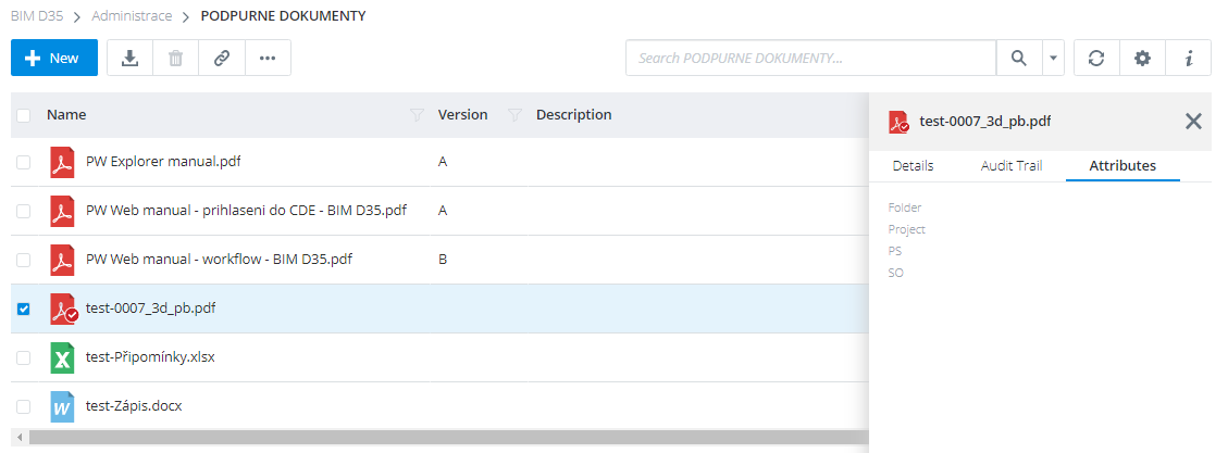 Atributy dokumentů a historie „Audit Trail“