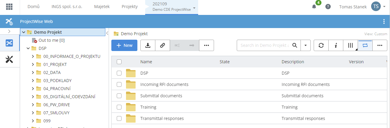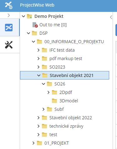 Kliknutím na ikonu bude dále přepojen na stránku s daty CDE a adresářovou strukturou projektu.