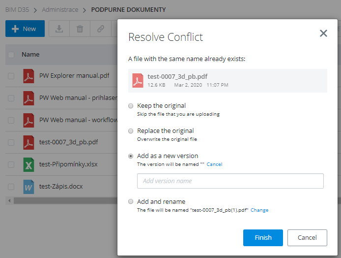 Vytvářením verzí (verzováním) dokumentů se myslí vytváření a práce s verzemi jednoho dokumentu. Verze dokumentu je kopie dokumentu, která je označená kódem verze (text, číslo, datum, kombinace všech). Někdy bývá označení verze předepsané administrátorem. Pro uživatele se jako aktivní Verze objevuje vždy ta nejnovější. Uživatel má možnost verze vytvářet při vkládání stejného jména dokumentu do adresáře, případně ručně, pravým tlačítkem nebo výběrem z menu.