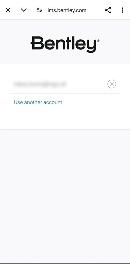 Krok 4: Přihlašovací údaje Bentley CONNECT Chcete-li odemknout funkce aplikace, přihlaste se pomocí přihlašovacích údajů Bentley CONNECT. Pokud někdy zapomenete své heslo, máte možnost jej obnovit nebo si vyžádat e-mail s žádostí o obnovení hesla.