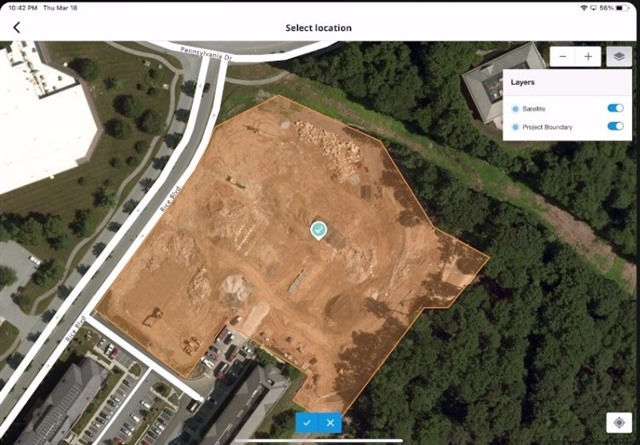 Uživatelé mohou přidat Map Location, což umožňuje geograficky označit polohu inspekce přímo na mapě. Umístěte ikonu inspekce na požadované místo a poté výběr potvrďte kliknutím na zaškrtávací značku.