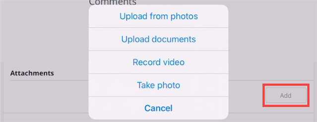 Ve spodní části formuláře inspekce máte možnost přidávat přílohy (Attachments).