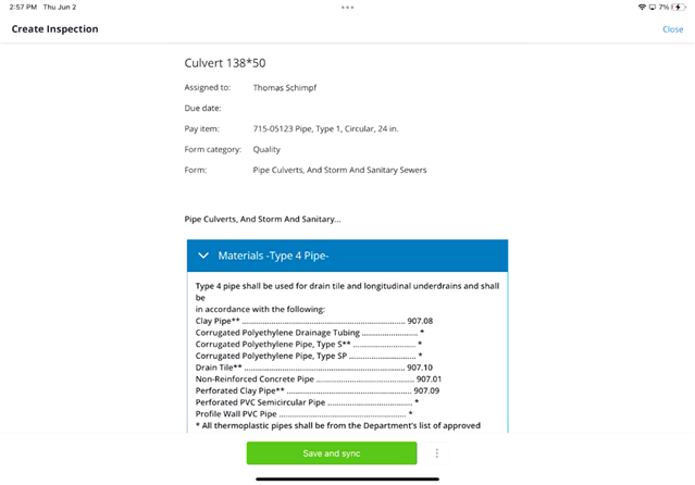 Po kliknutí na Inspect se otevře formulář inspekce, kde můžete zobrazit a upravit další podrobnosti inspekce.