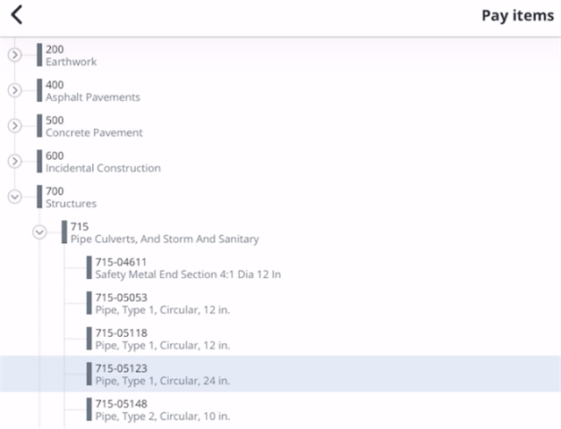 Pay item umožňuje uživatelům vybrat platební položku pro stavební objekty určité kategorie.