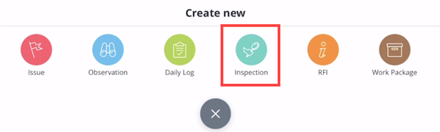 Inspekci lze vytvořit v aplikaci SYNCHRO Field na domovské stránce projektu výběrem možnosti Inspection v záložce Create.