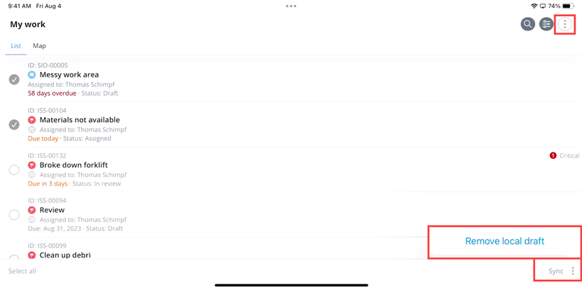 - Ikona tři bodky: Tato ikona nabízí možnost hromadného výběru úkolů. Můžete ji využít pro výběr více úkolů najednou, což usnadní hromadné akce jako synchronizaci nebo odstranění lokálních konceptů.