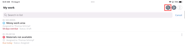 - Ikona lupy: Rychlé vyhledávání úkolů pomocí popisů. Stačí zadat klíčová slova pro zúžení výsledků.